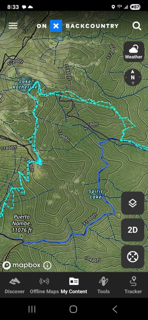 When imported into the Gaia Maps app, the gpx file from Bailey’s page also does not show this issue. The gpx file correctly shows the route going past Lake Katherine (not past Spirit Lake, though that is an alt route for the thru-hike) with no out and back.