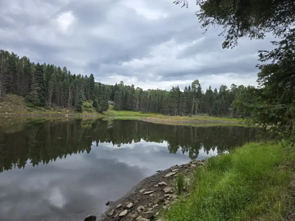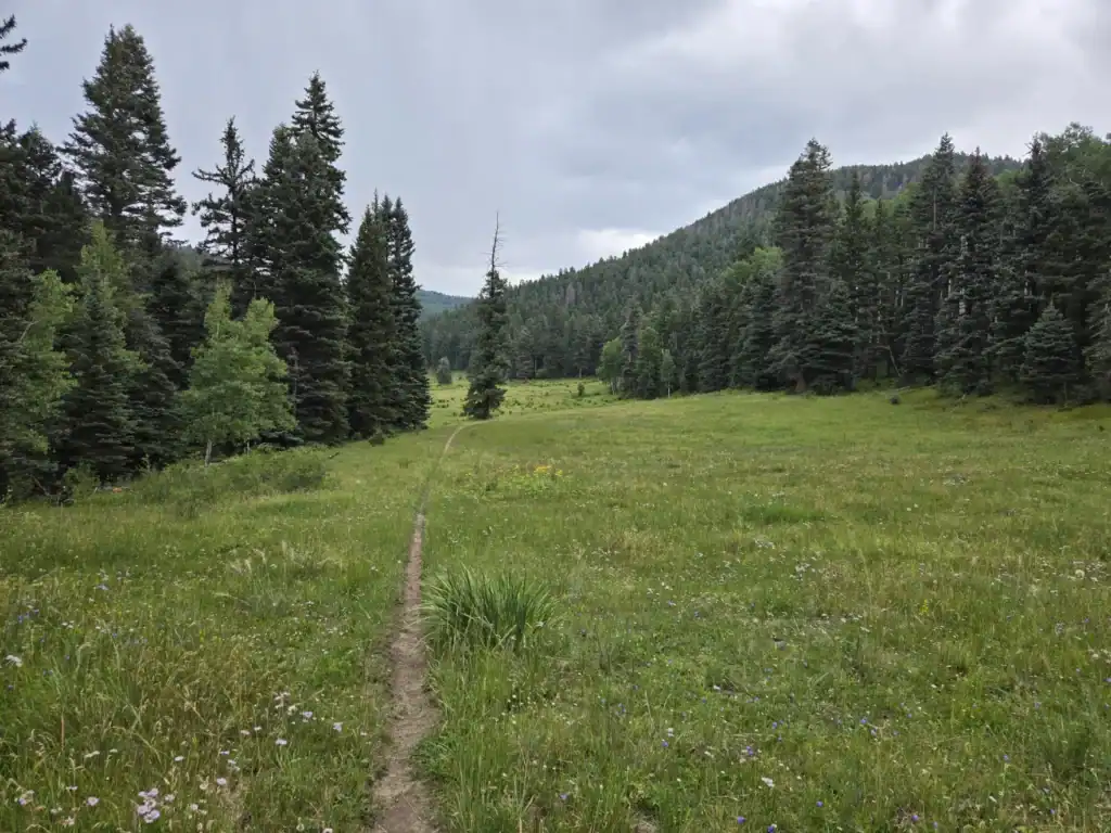 As a shakedown trip to finish my section hike, I backpacked from Santa Barbara Campground to Agua Piedra Campground on August 8, camped in the campground and hitched back to my start the next day. I then backpacked from Agua Piedra Campground to Taos on August 14-17. Weather was moderate with highs mostly in the 70s and lows probably in the low 50s. I had light rain two out of three evenings. Water sources were all flowing well as described in the Guidebook with one obscure exception: the lower source on the Connector was too dry for practical use, but the upper source, a short distance before, was flowing well enough. I had no great routefinding difficulties but I WOULD NOT try this route, especially around the start of the Connector, without a GPS app and the SF2T GPX file. Some other areas, like La Cueva Canyon, the unnamed connection to FR 442, and Bernardin Lake have the potential for confusion, but are casual with a GPS. The trail: though the climbs are relatively short (usually around 1,000 feet) they are steep! I was worried that the forest road walking would get old but, except for a few miles here and there, I enjoyed it. Most of the forest roads are lightly used and scenic. The finish up Drake Canyon and down into Taos is epic and beautiful trail walking.
