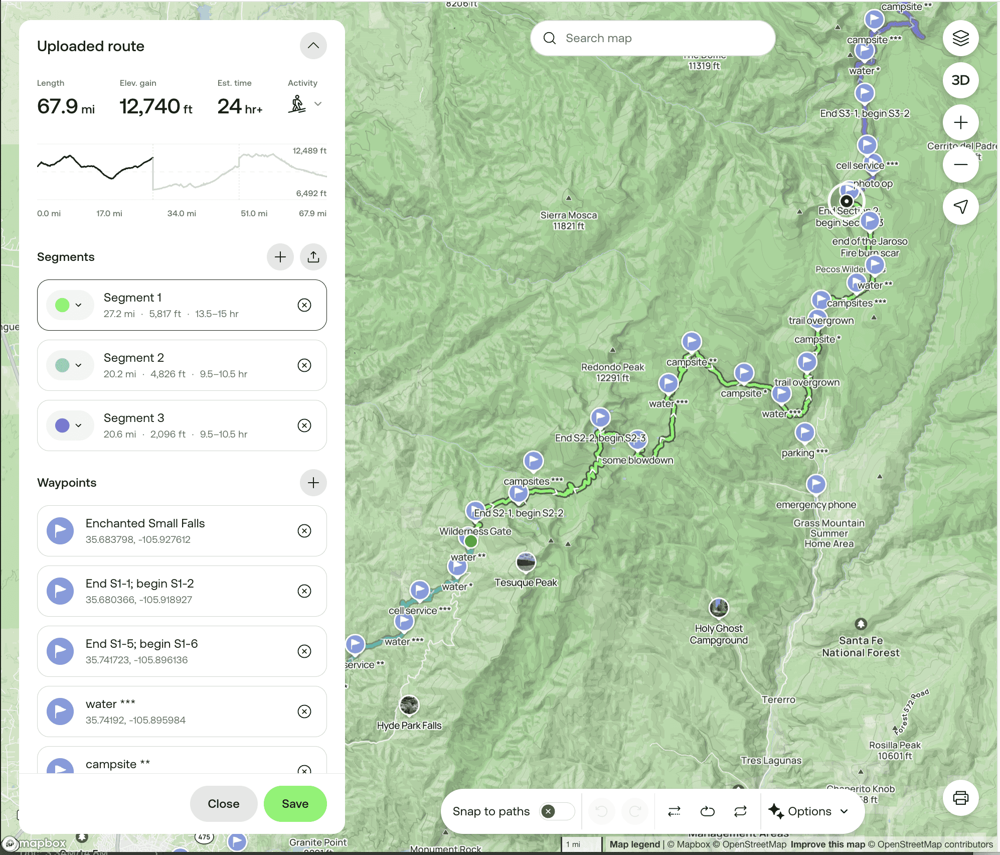 Enhanced gpx file for the Santa Fe to Taos Thru-Hike